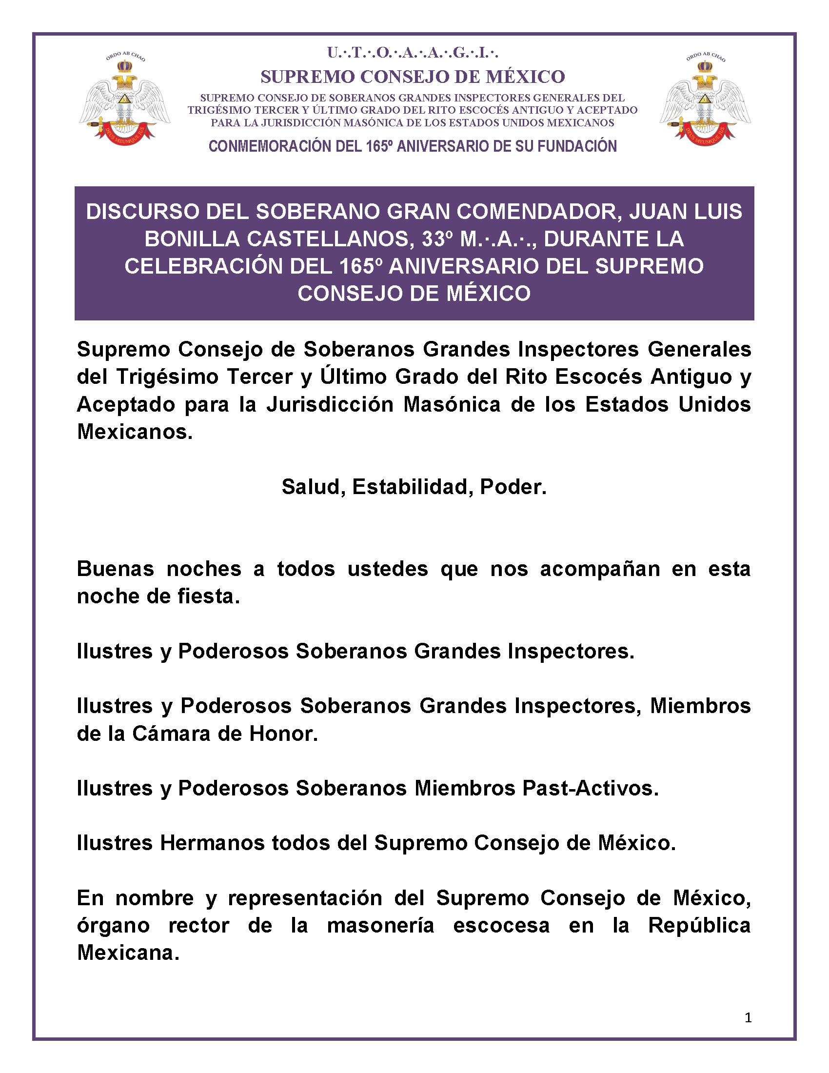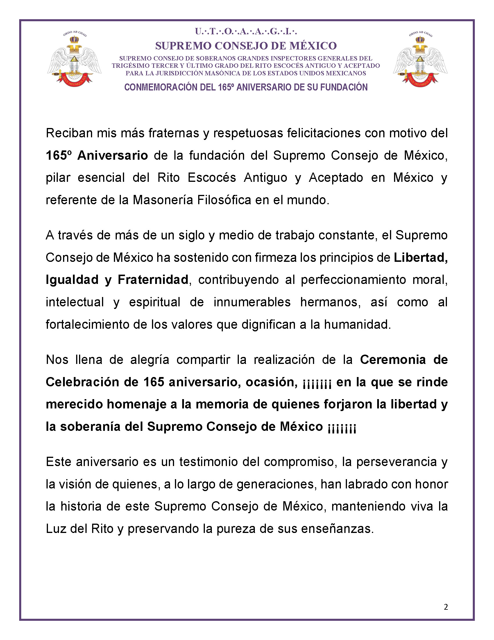 165º ANIVERSARIO DE LA FUNDACIÓN DEL SUPREMO CONSEJO DE MÉXICO