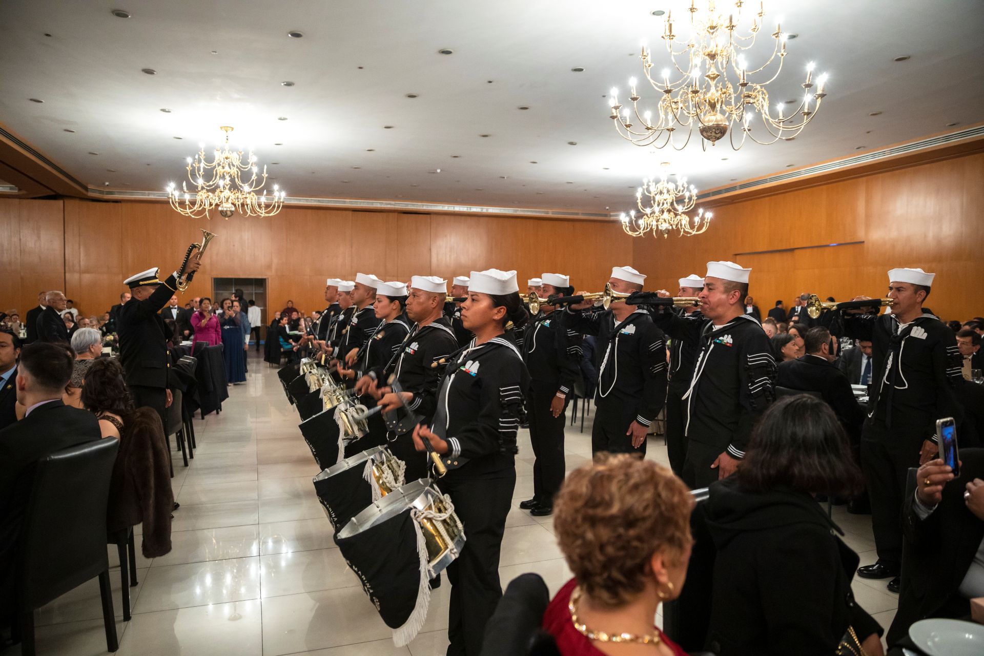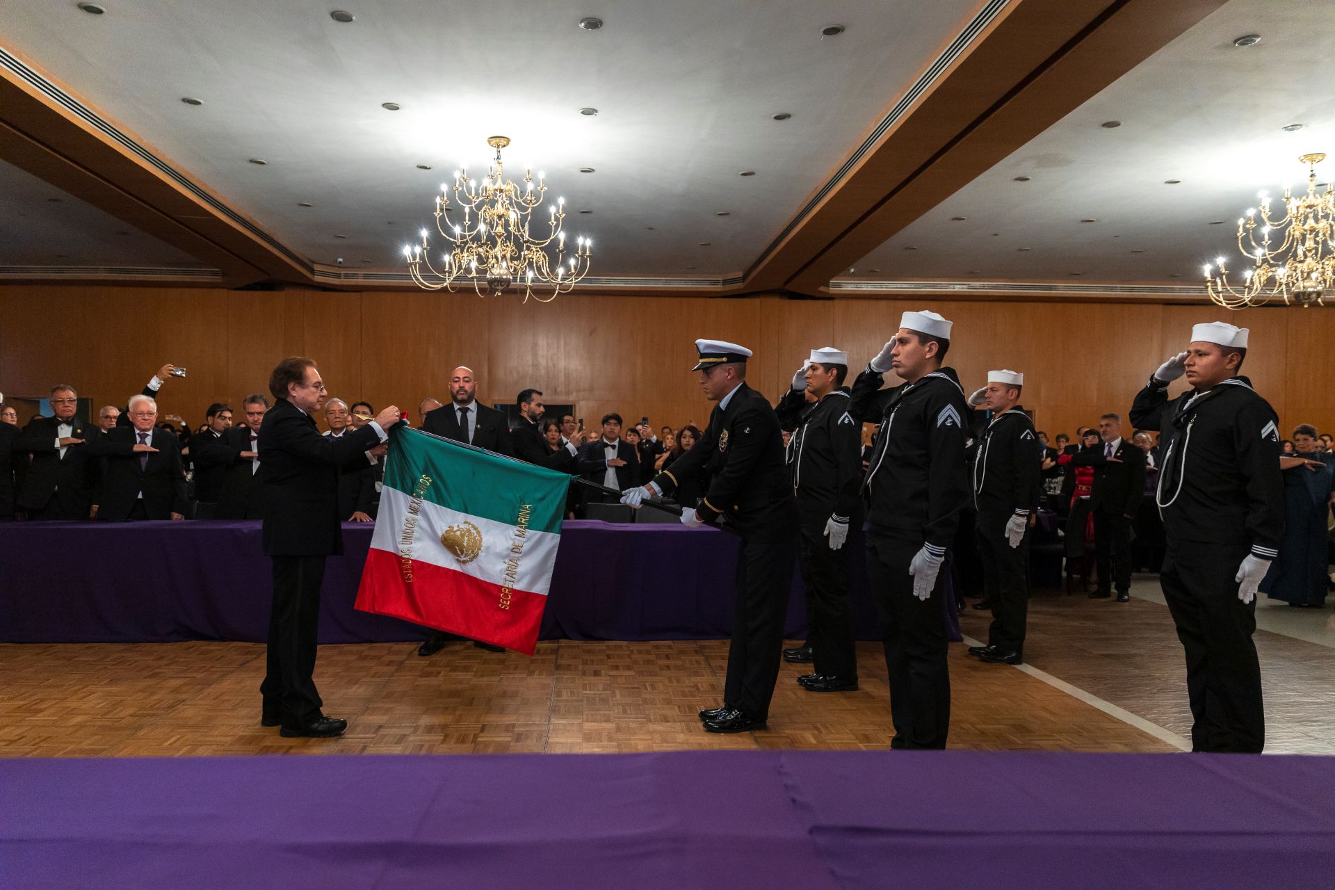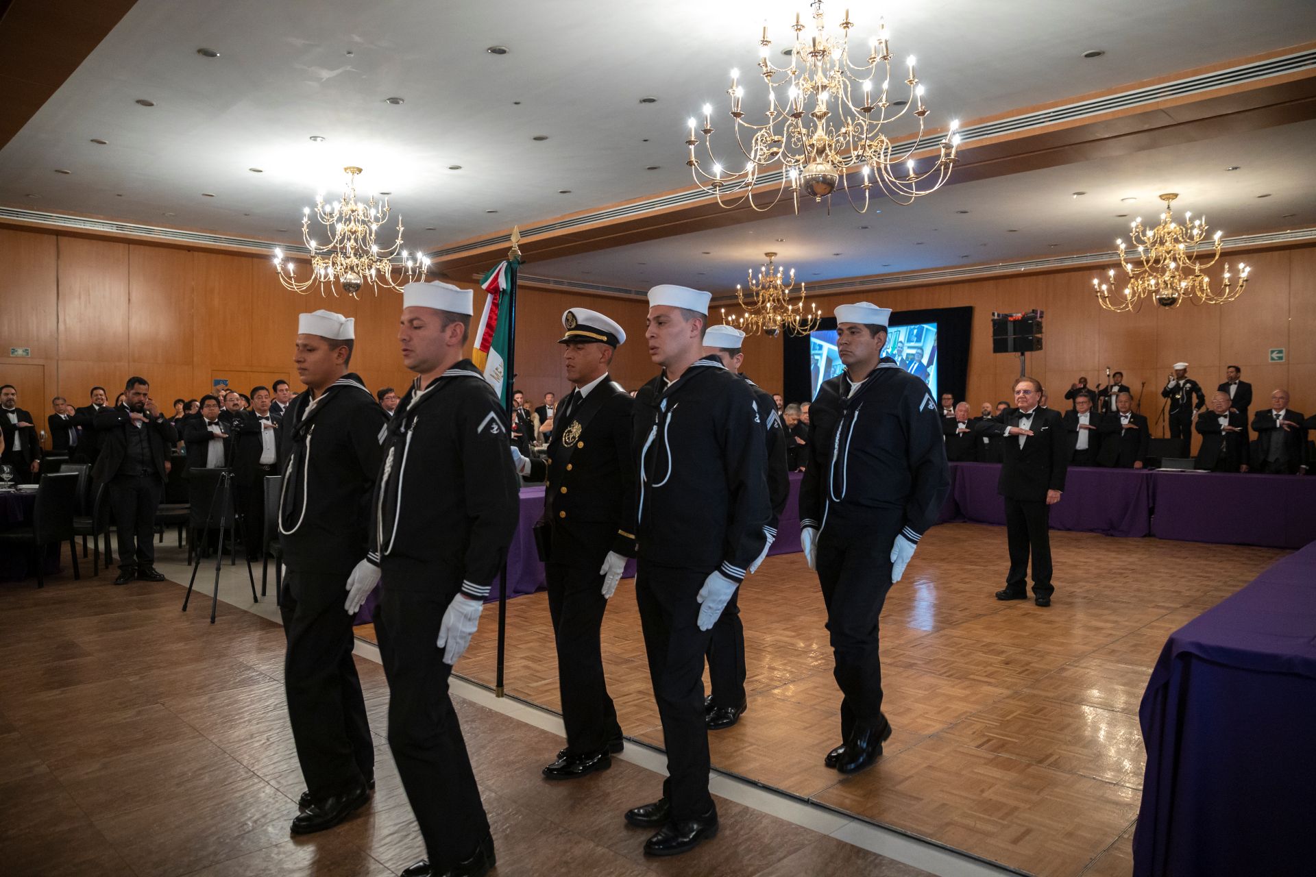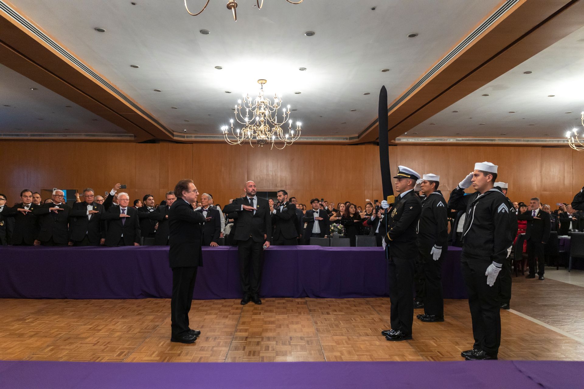 Como es tradición en los grandes eventos del Supremo Consejo de México, el acto protocolario inició con los Honores a la Bandera Nacional, a cargo de la Escolta y Banda de Guerra de la Secretaría de Marina, seguidos por la entonación del Himno Nacional Mexicano, interpretado con solemnidad por todos los presentes. La participación de la Banda de Guerra, que incluyó una destacada selección de marchas militares, imprimió un profundo sentido de patriotismo al evento.