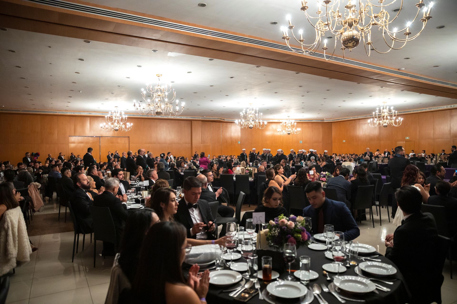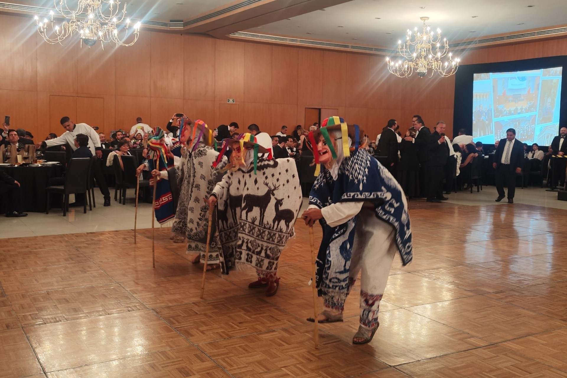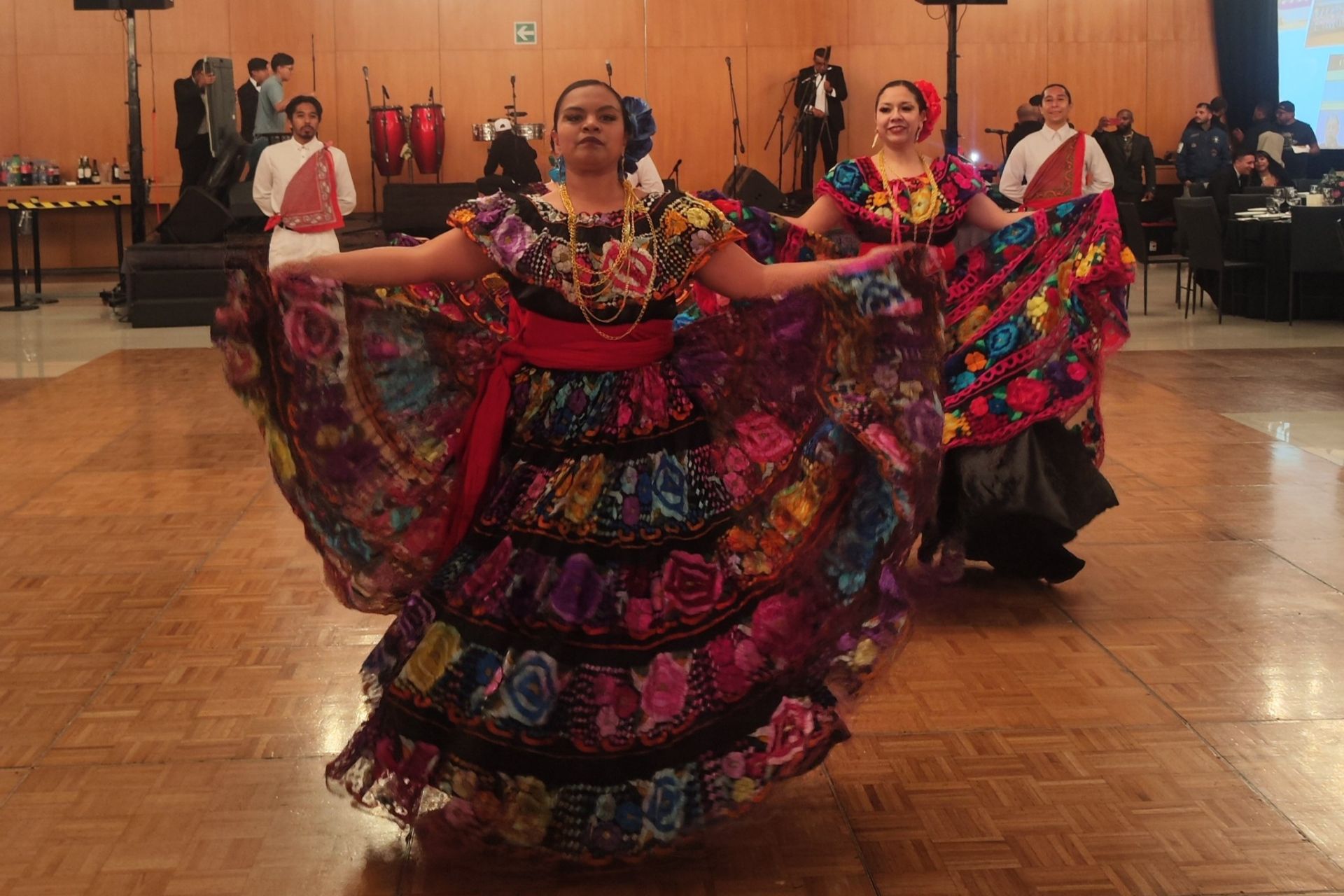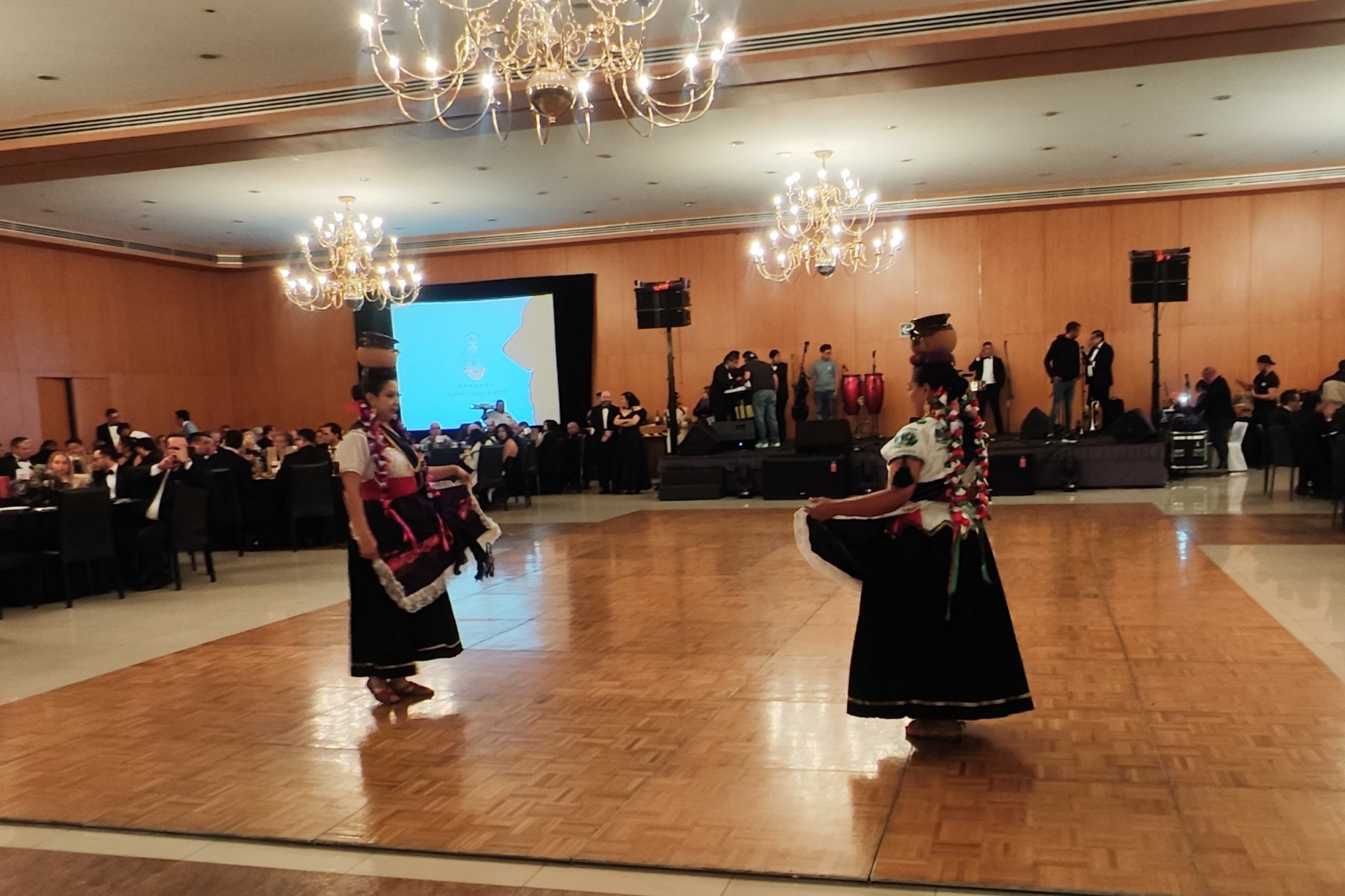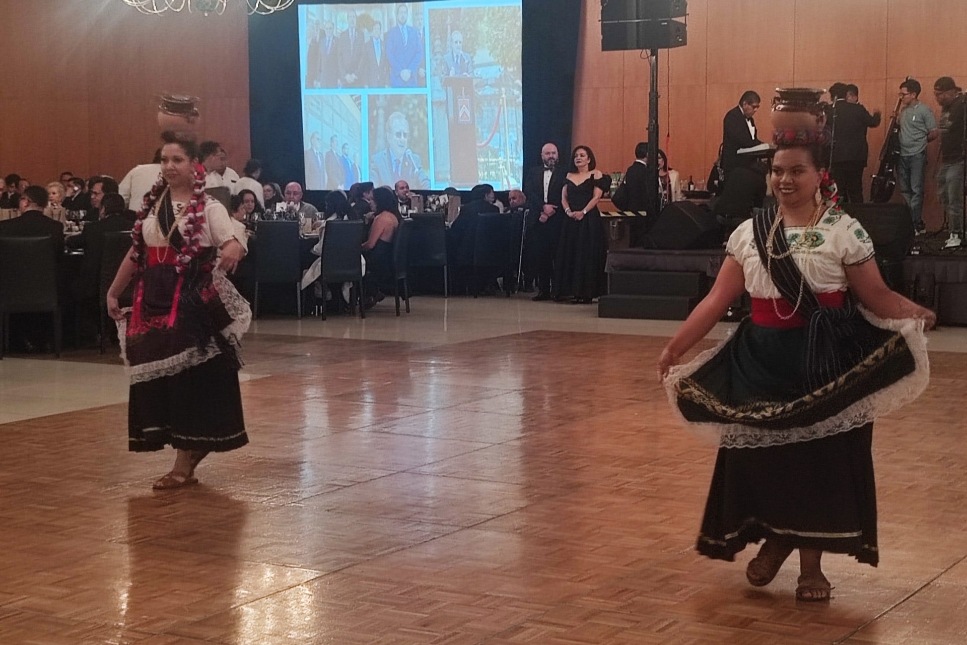 Durante la Cena de Gala, los asistentes disfrutaron la presentación de una destacada compañía de danza folclórica, que ofreció un recorrido por la riqueza cultural de México a través de piezas como el Huapango, la Banba, la Bruja y la tradicional Danza de los Viejitos.