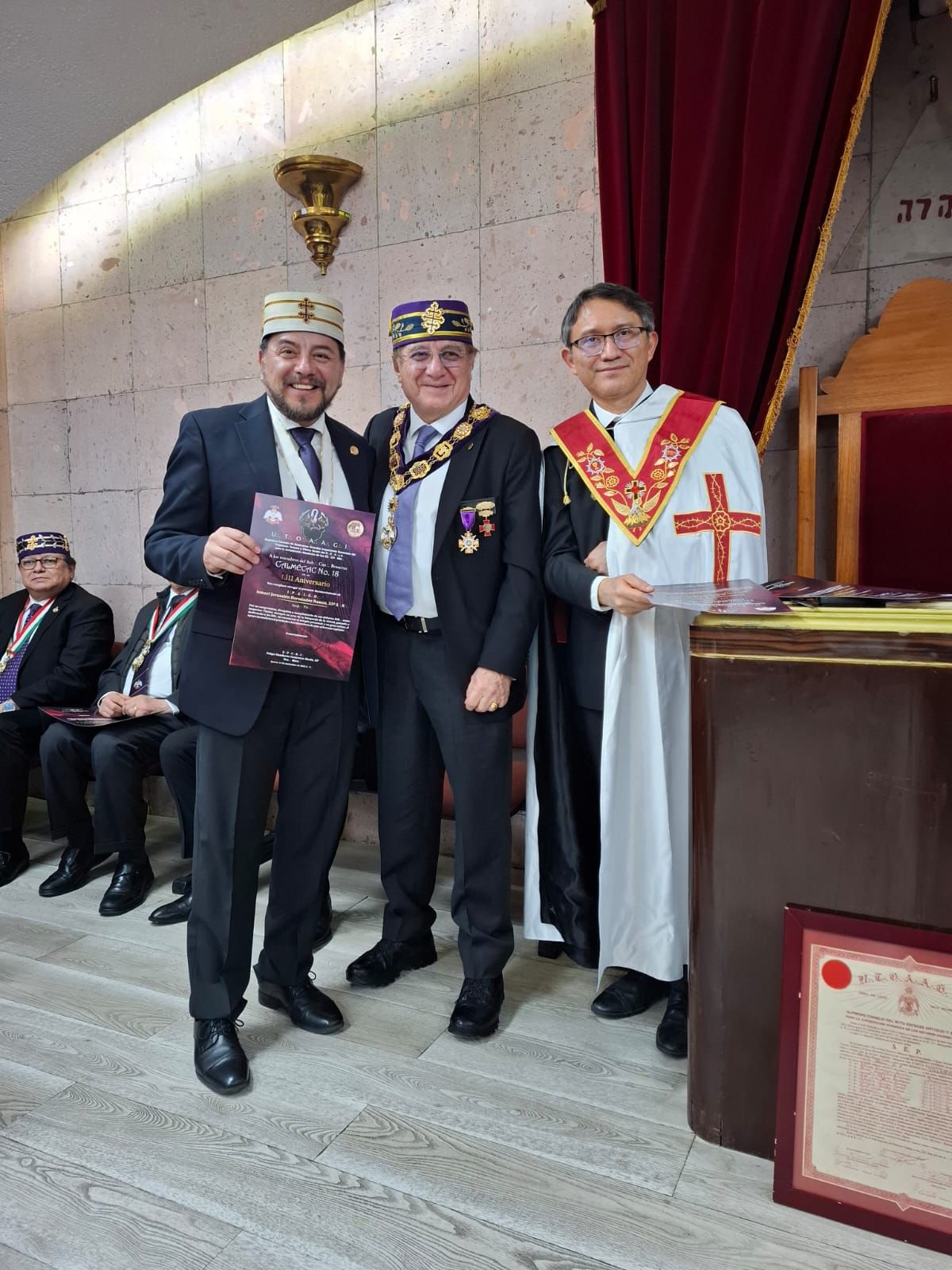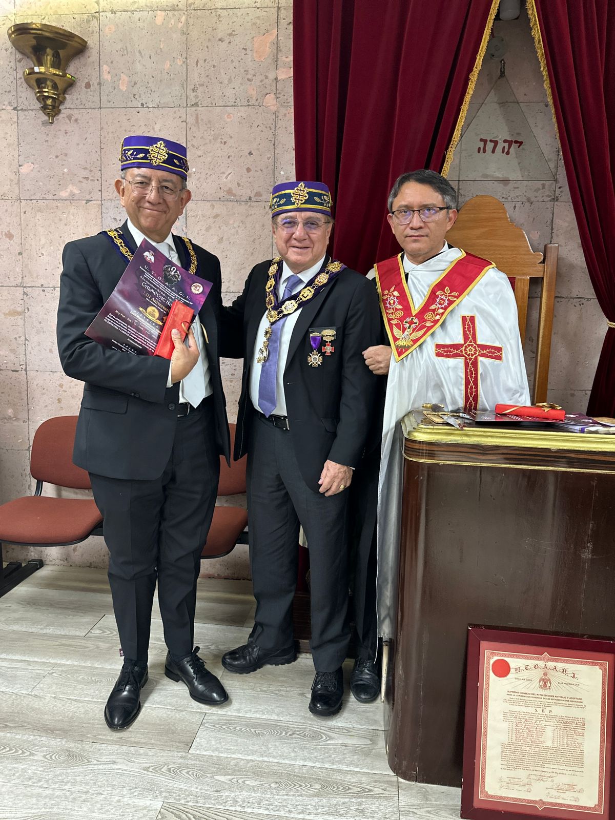 - I.·. P.·. S.·. G.·. I.·. G.·. O.·. Wilbert Arcila Rodríguez, 33º M.·. A.·., Delegado Provincial para los VV.·. y CC.·. de Tlaxcala y Presidente del Colegio de Inspectores.