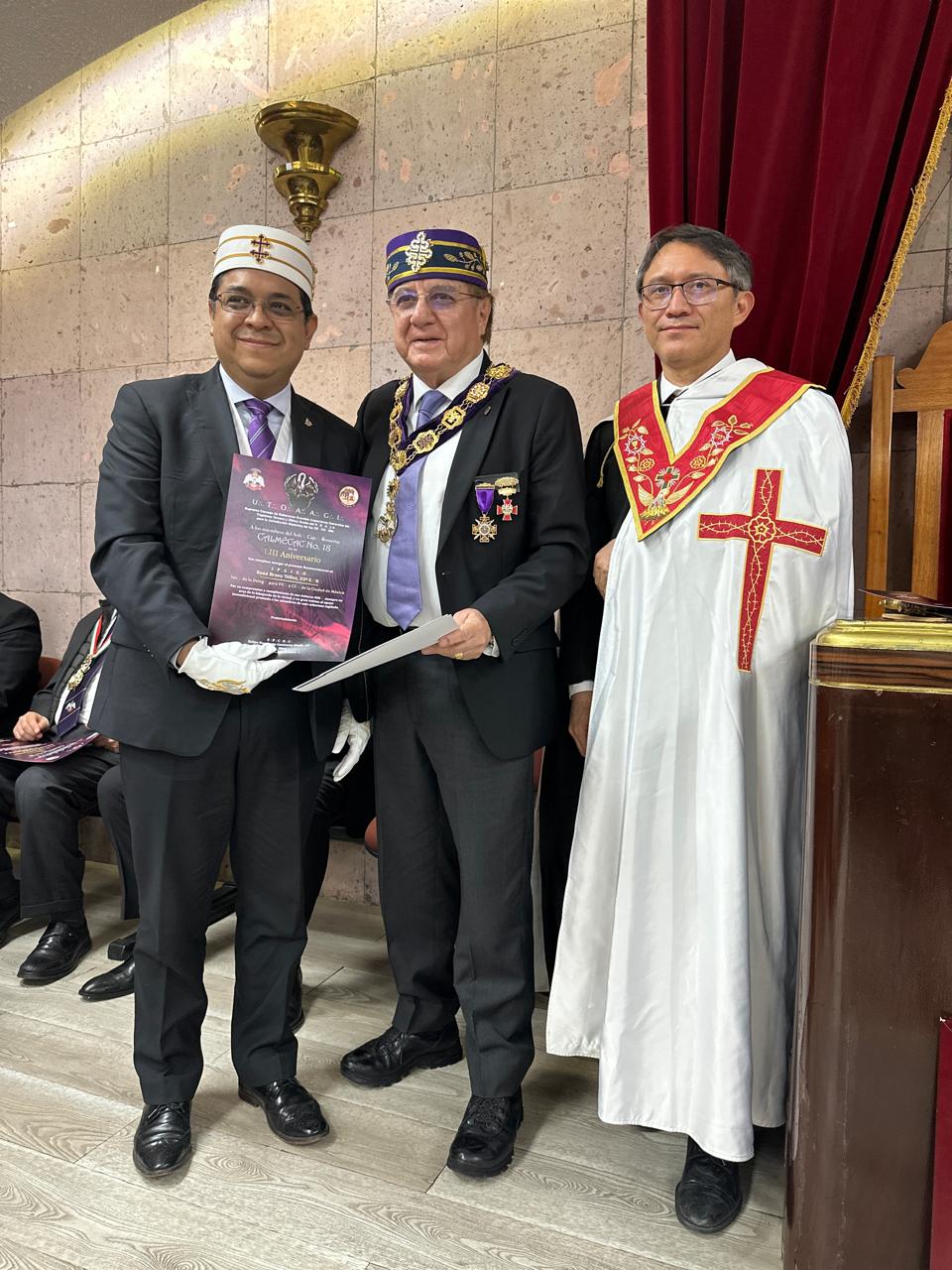 El jueves 13 de noviembre de 2025, el Soberano Capítulo Rosa Cruz “Calmécac” No. 18 celebró el LIII Aniversario de su fundación. A esta magnífica celebración acudieron Miembros Activos, Miembros de la Gran Cámara de Honor, Miembros Past Activos y Súper Numerarios del Supremo Consejo de México; encabezados por el I.·.P.·.S.·.G.·.I.·.G.·.O.·. Juan Luis Bonilla Castellanos, Muy Poderoso Soberano Gran Comendador y Gran Maestre de la Orden.